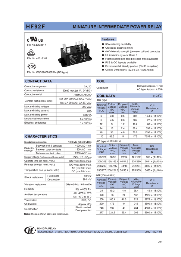 HF92F-024D-2C21S Przekaźnik mocy HF92F-024D-2C21S Monostabilny, 8310 VA Max