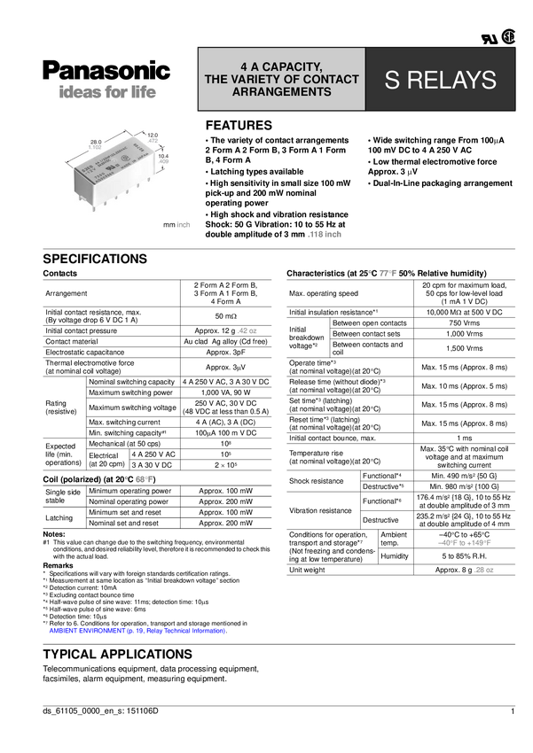 Przekaźnik mocy PCB S 4 A, Panasonic S224 24 V 2 NO/2 NC Max. (DC) 3 A/(AC)