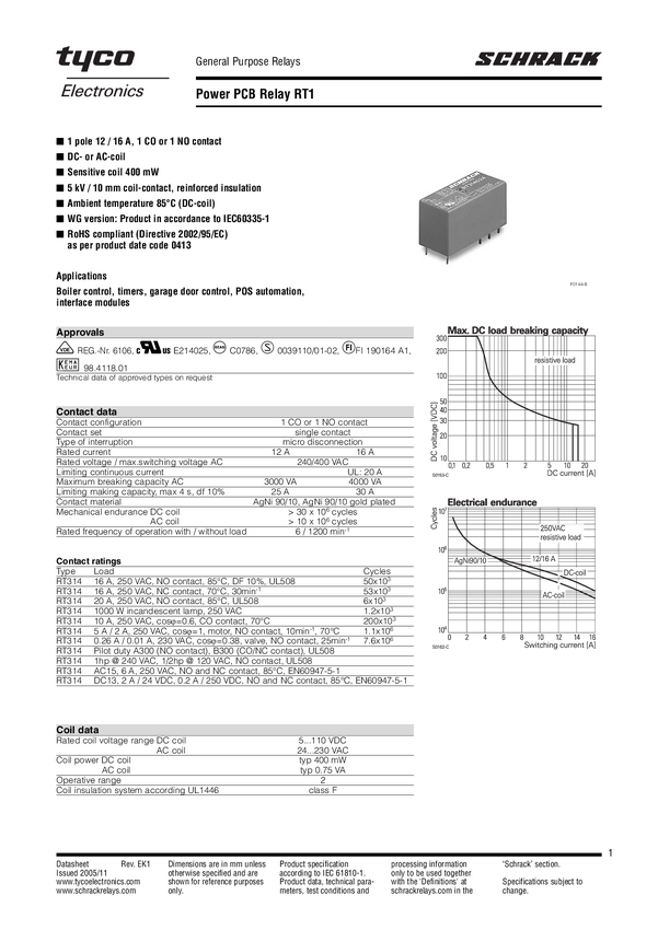 9-1393239-5 Przekaźnik mocy PCB 16 A, 1 x zestyk przełączny TE Connectivity RT314012 12...