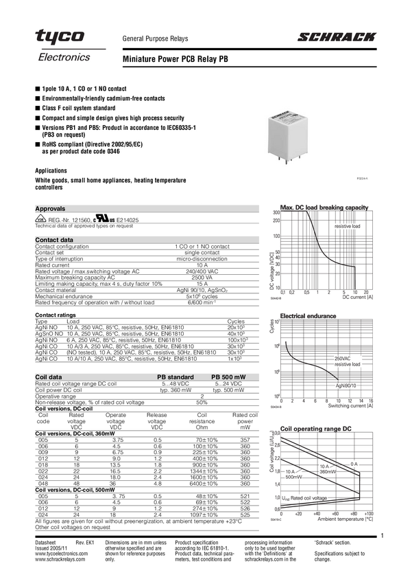 Przekaźnik mocy PCB TE Connectivity PB114012 12 V/DC 1 zestyk przełączny 10 A