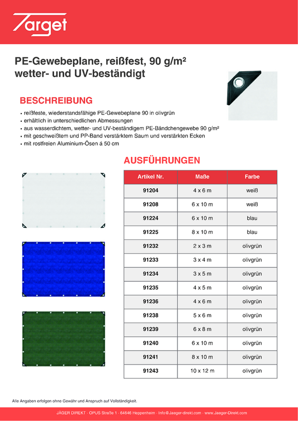 91233 Target Ladungssicherung 91233 Plandeka 8 m²