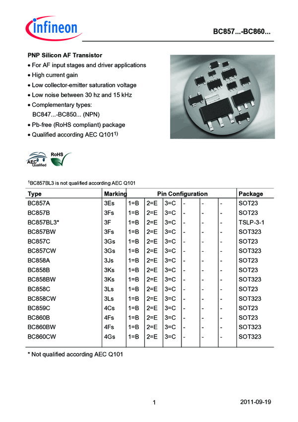 Tranzystor Infineon Technologies BC858C PNP Rodzaj obudowy SOT-23 N/A N/A