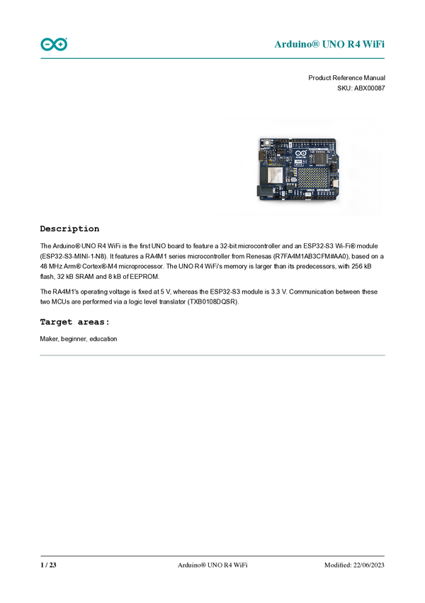 ABX00087 Arduino ABX00087 Płytka Uno Rev4 Wifi