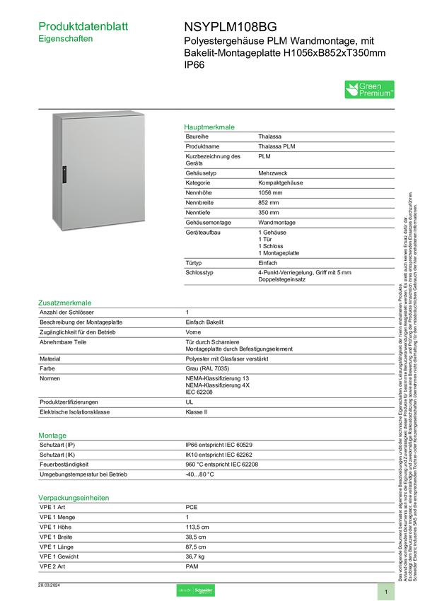 NSYPLM108BG Schneider Electric PanelSeT PLM NSYPLM108BG Szafka instalacyjna 852 x 1056...