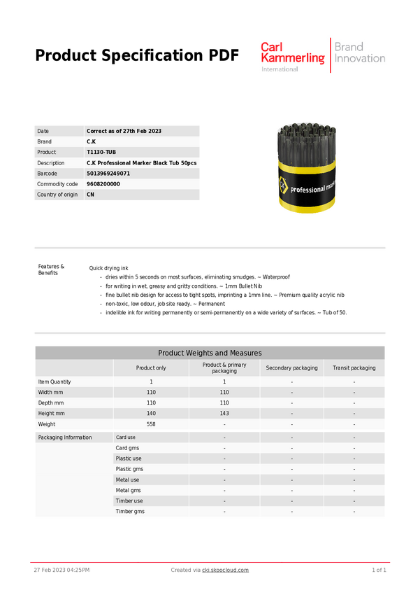 T1130-TUB Profesjonalny marker permanentny, zestaw 50 sztuk C.K T1130-TUB