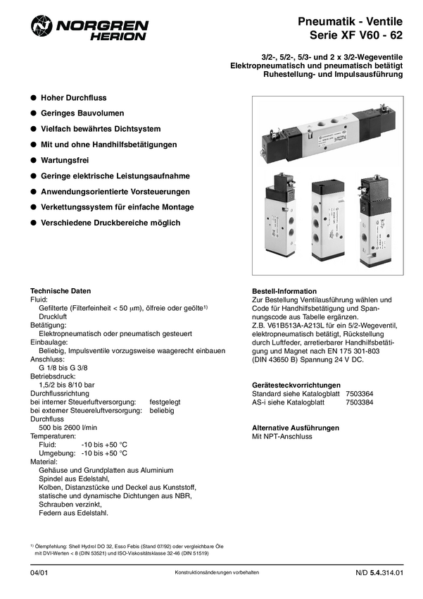 V61B513A-A213L Zawór elektromagnetyczny In-Line Norgren V61B513A-A213L - 5/2-drożny