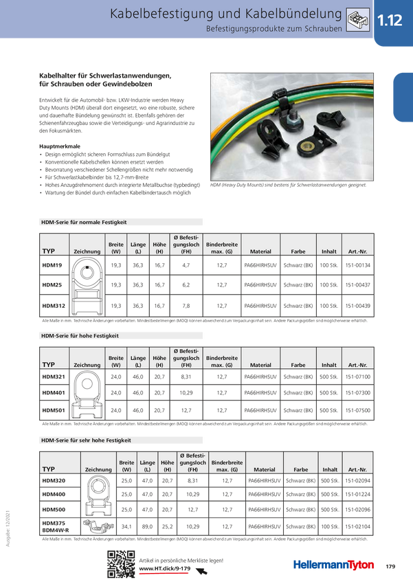 151-00437 Podstawa montażowa HellermannTyton HDM25-PA66HIRHSUV-BK 151-00437, 1 szt.