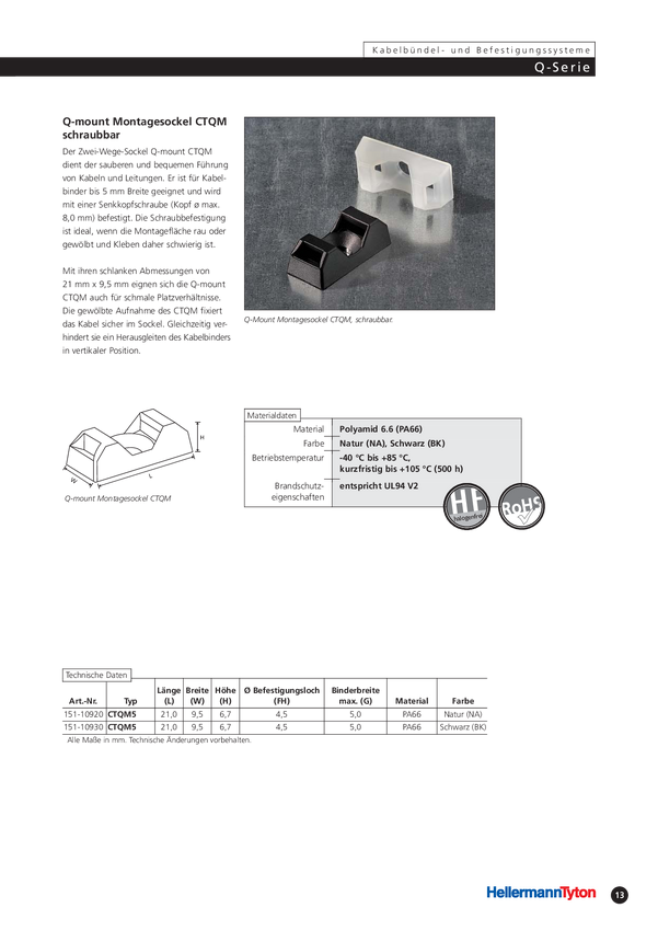 151-10920 Gniazdo montażowe do opasek kablowych HellermannTyton CTQM5-PA66-NA-C1 151-...