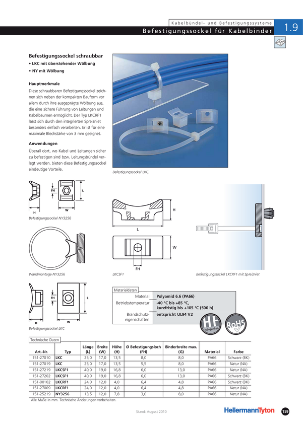 151-25219 Gniazdo montażowe do opasek kablowych HellermannTyton NY3256-N66-NA-M1 151-...