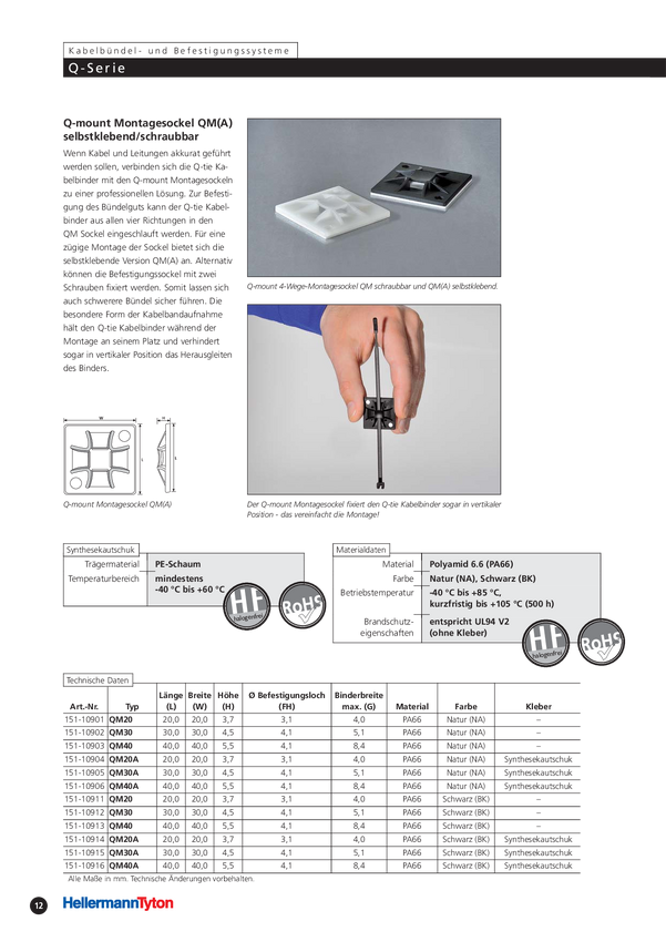 151-10901 Gniazdo montażowe do opasek kablowych HellermannTyton QM20-PA66-NA-C1 151-1...