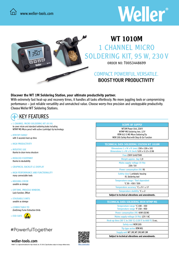 T0053448699 Stacja lutownicza - zestaw Weller WT1010M mit WMTP MS T0053448699 40 W 50 -...