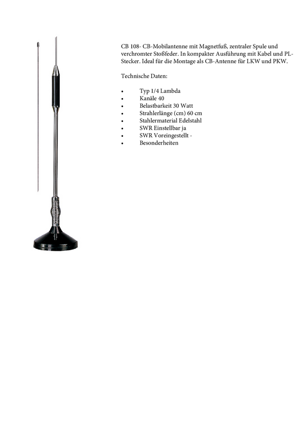 65215 Antena z podstawą magnetyczną CBM 108 CB