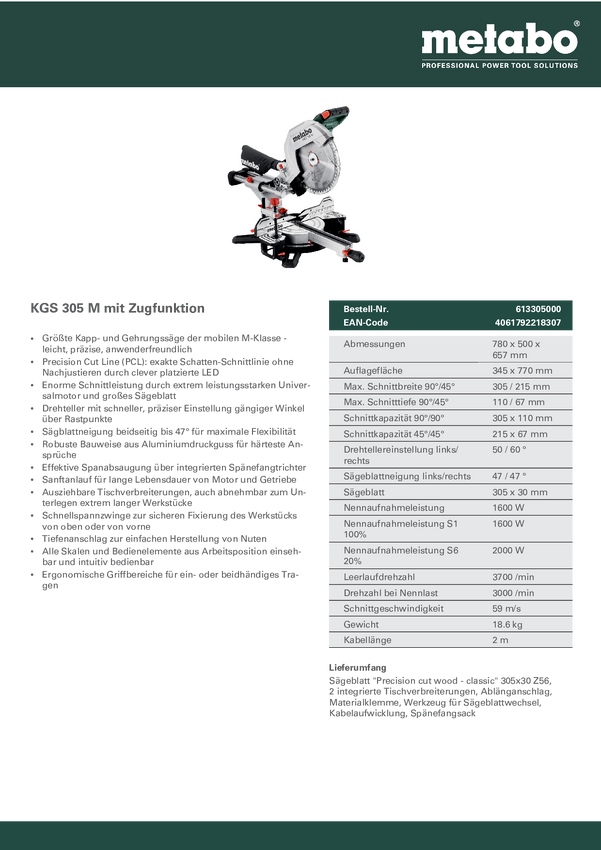 613305000 Piła ukosowa Metabo 613305000 613305000 1 szt.