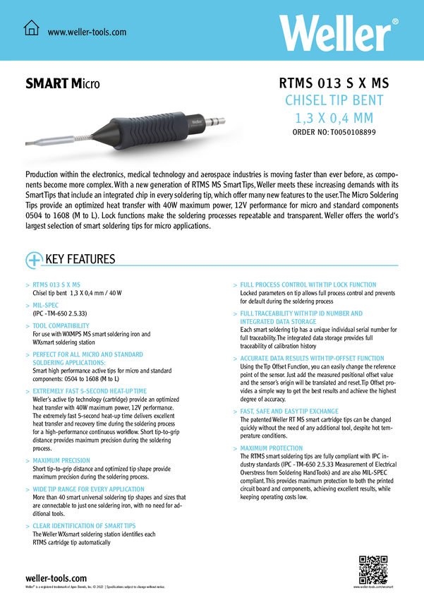 T0050108899 Grot lutowniczy Weller RTMS 013 S X M T0050108899 1 szt.