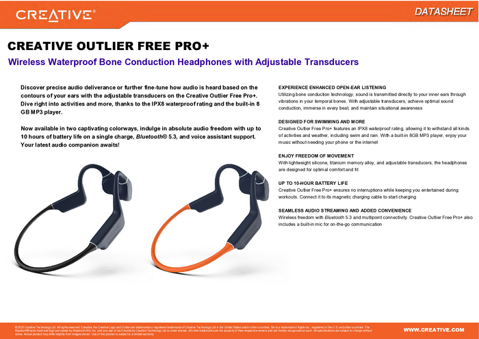 51EF1081AA001 Słuchawki nauszne Creative Outlier Free Pro+ 51EF1081AA001 stereo czarny