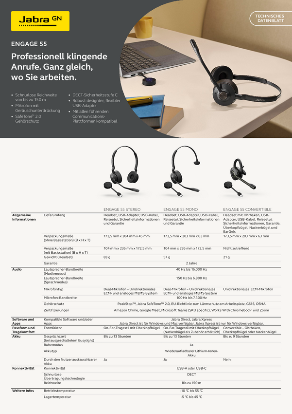 Jabra Engage 55 Słuchawki nauszne DECT Mono czarny regulacja głośności, wyciszenie mikrofonu, Mono, uchwyt nauszny Telef