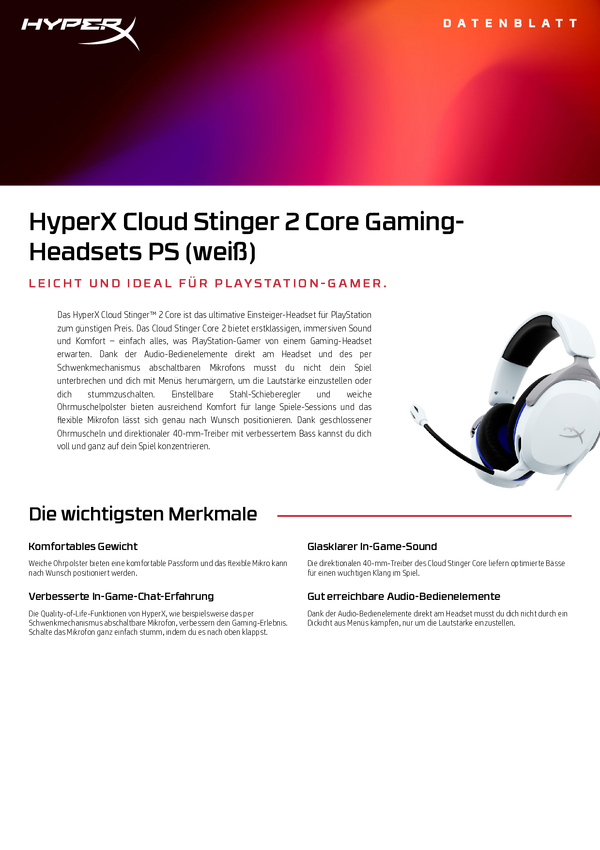 Słuchawki wokółuszne HyperX Cloud Stinger 2 Core PS 6H9B5AA stereo biały