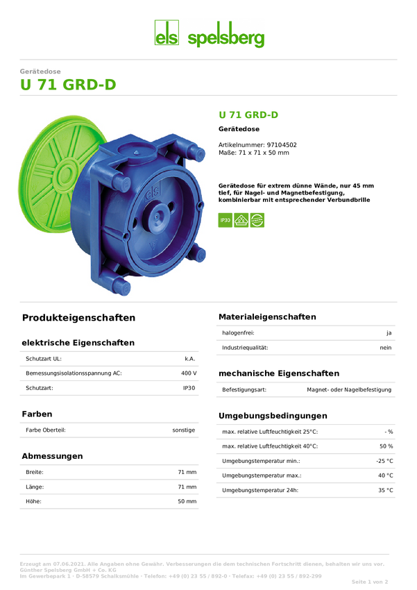 97104502 Spelsberg 97104502 Gniazdo dodatkowe bez halogenów, wiatroszczelny (Ø x W)...
