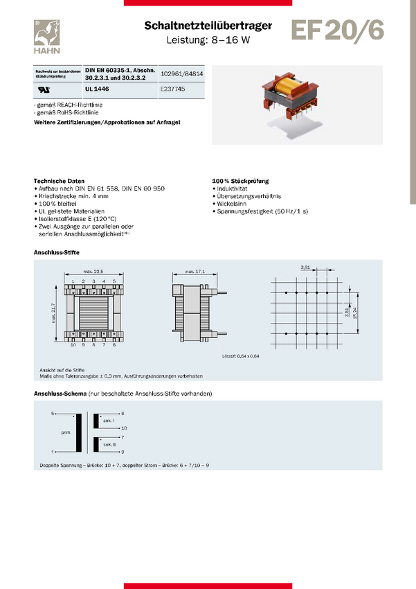 Transformator V 50212 Hahn V 50212 N/A N/A