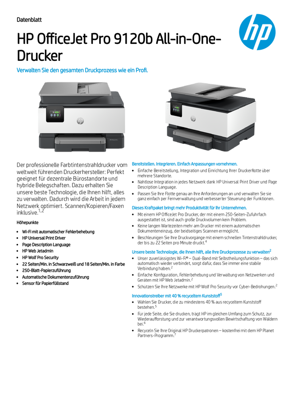 HP Officejet Pro 9120b All-in-One Drukarka wielofunkcyjna druk atramentowy druk kolorowy A4 drukowanie, skanowanie, kopi
