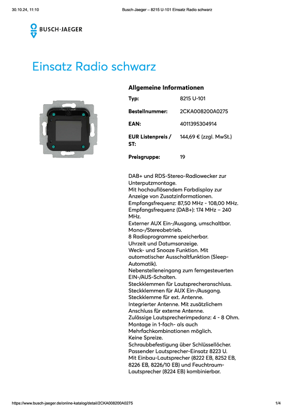 2CKA008200A0275 Busch-Jaeger Płytka przycisku Radio wielobarwny 2CKA008200A0275 1 szt.