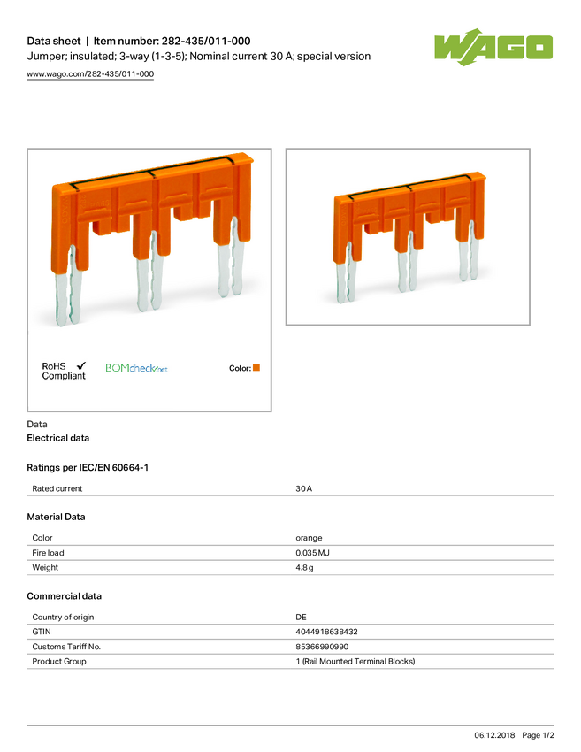282-435/011-000 WAGO 282-435/011-000 Mostek przeskokowy 50 szt.