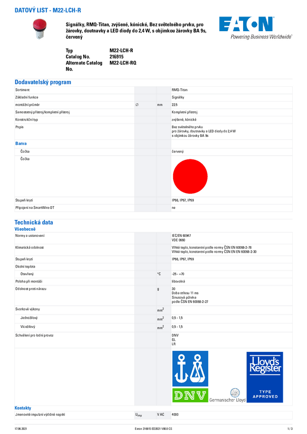 216915 Eaton M22-LCH-R Lampka sygnalizacyjna czerwony 1 szt.