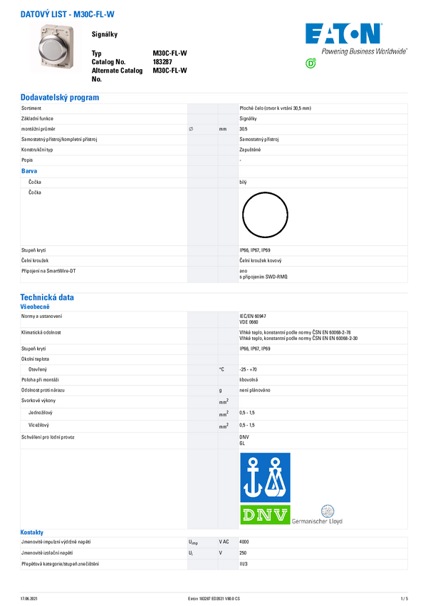 183287 Eaton M30C-FL-W Lampka sygnalizacyjna biały 1 szt.