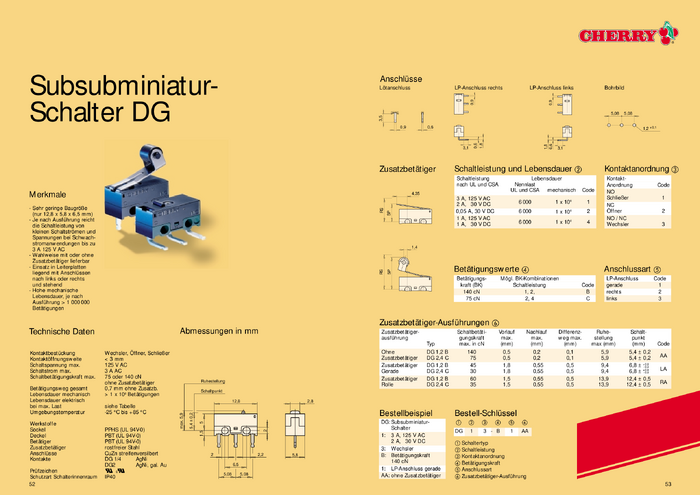 DGE3-E7LC ZF DGE3-E7LC Mikroprzełącznik 125 V/AC 3 A 1 x wł/(wł) IP40 (przełą...