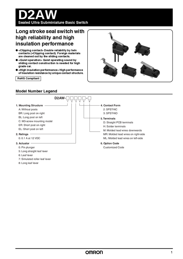 D2AW-A083D-R Omron D2AW-A083D-R Mikroprzełącznik 12 V/DC 0.1 A 1 x wył/(wł) 1 sz...