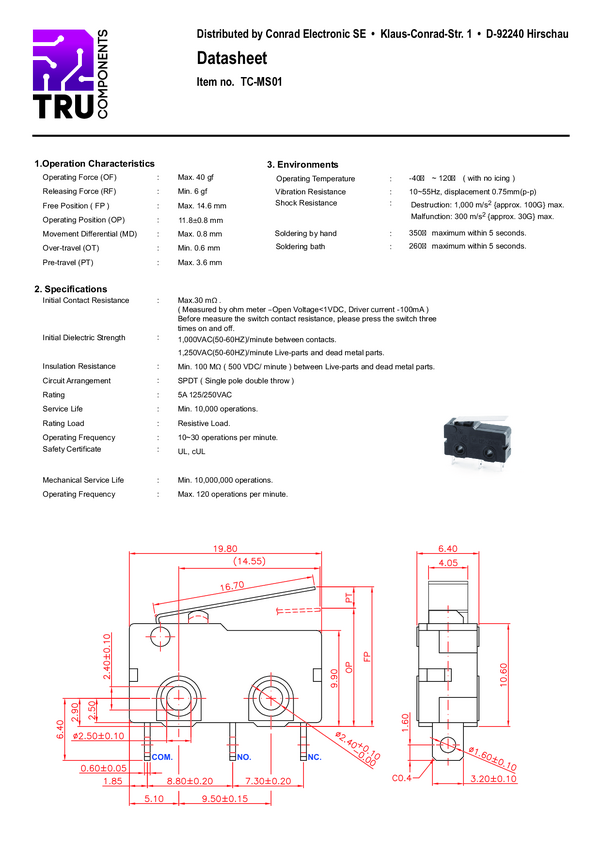 TC-MS01 Mikroprzełącznik TRU COMPONENTS TC-MS01 5 A chwilowy 1 szt.
