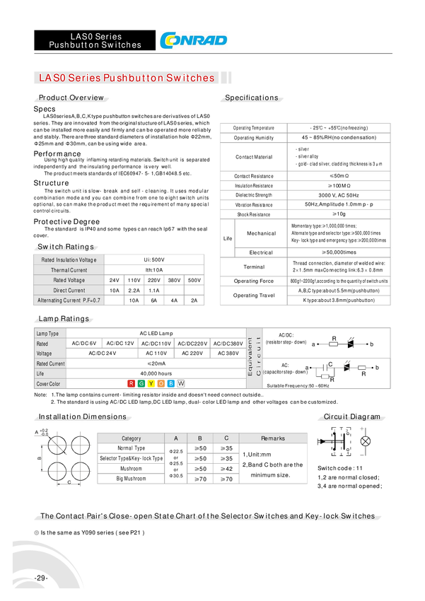 Element stykowy Conrad LAS0-B 500 V/AC 2 A, 1NO/1NC