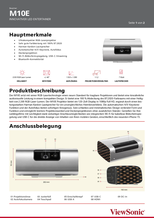 VS19689 Viewsonic Rzutnik M10E FHD 2200 RGB Laser ANSI-Lumen: 2200 ANSI lumenów sre...