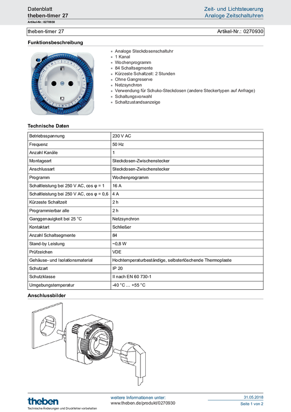 0270930 Theben theben-timer 27 Wtyczka z zegarem