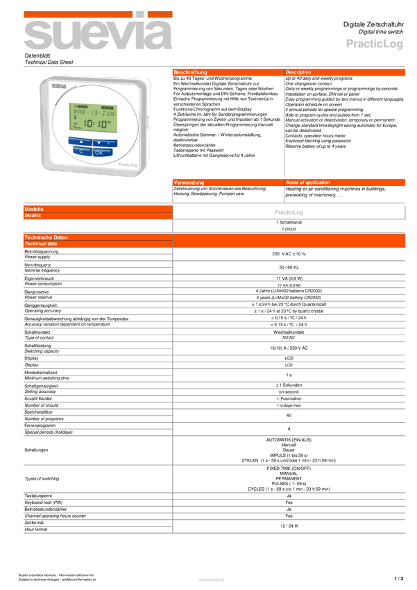 SU251512 Suevia SU251512 Przekaźnik zewnętrzny Practic Log, cyfrowy, 1 x WŁ/WYŁ