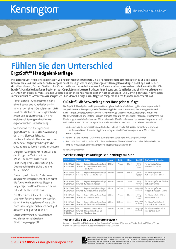 K50432EU Kensington ErgoSoft™ Podkładka pod mysz żelowa Ergonomiczne, antypoślizgowe...