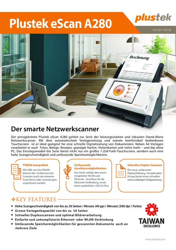 Dwustronny skaner dokumentów Plustek eScan A280 Essential 0300 1 szt.
