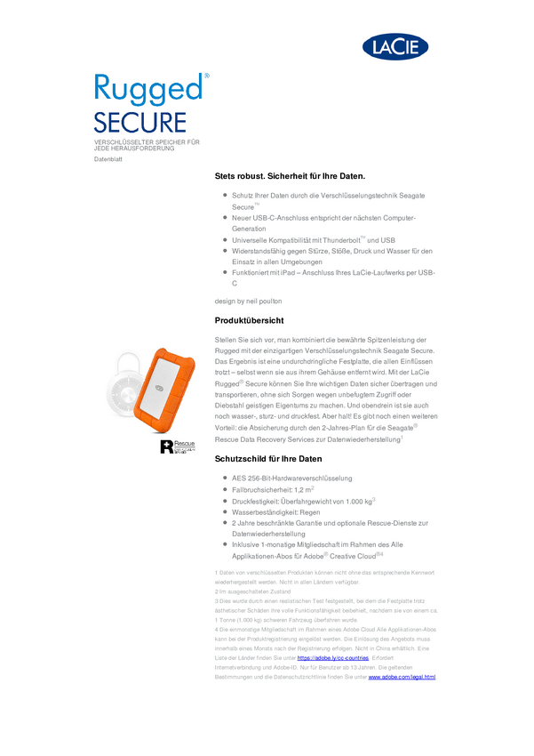 STFR2000403 LaCie Rugged Secure 2 TB Zewnętrzny dysk twardy 6,35 cm (2,5'') USB...