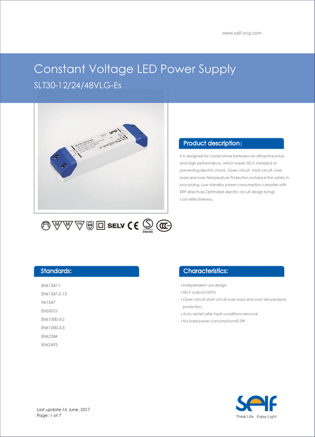 SLT30-48VLG-ES Self Electronics SLT30-48VLG-ES Sterownik LED Stałonapięciowy 30 W 0 A - 62...