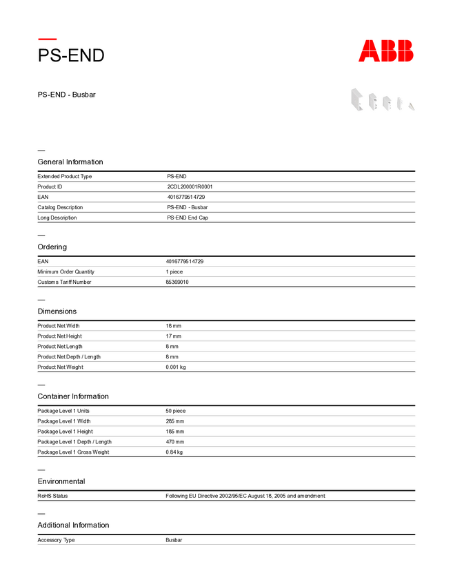 Pokrywa zamykająca ABB 2CDL200001R0001