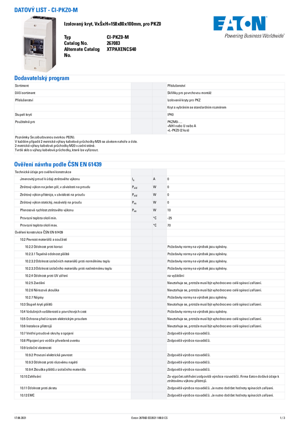 267083 Pusta obudowa Eaton CI-PKZ0-M (D x S x W) 80 x 97 x 160 mm 1 szt.