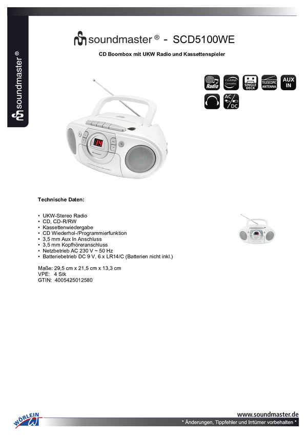 SCD5100WE Radio-CD soundmaster SCD5100WE fale metrowe (VHF) biały