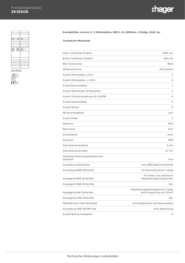 Hager ZK3EN28 Kompletne pole Content 1 szt.
