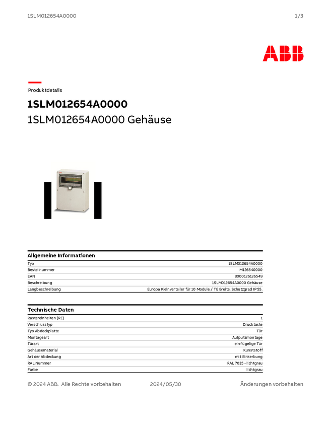M126540000 ABB M126540000 M126540000 Szafka rozdzielcza moduł, nadtynkowy Ilość rzędów...