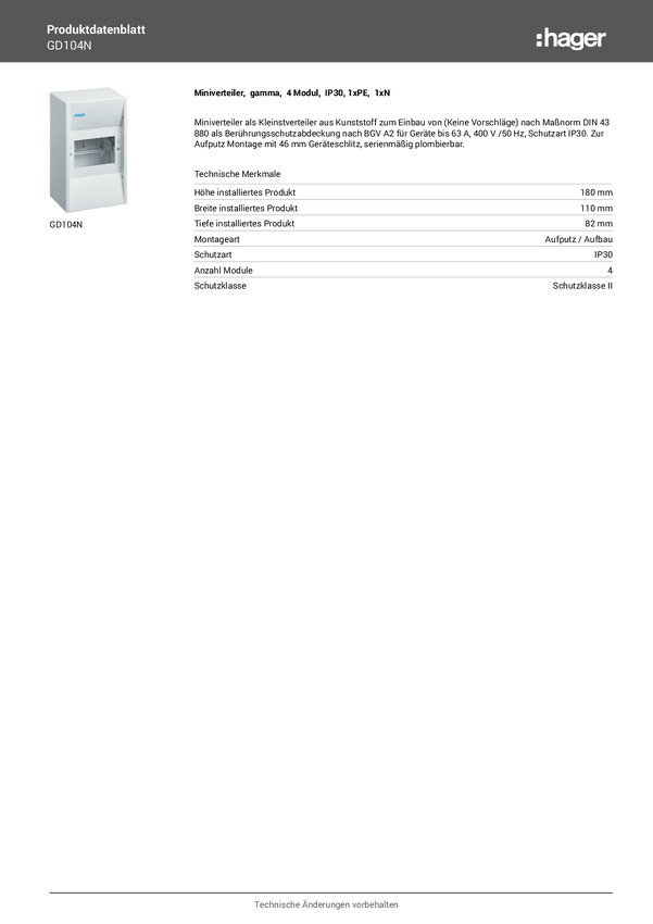 GD104N Hager GD104N GD104N Rozdzielnica mała Content 1 szt.