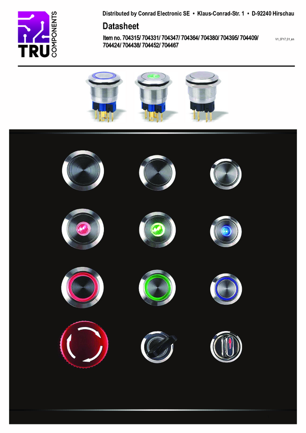 704467 TRU COMPONENTS 704467 Wyłącznik awaryjny LAS1-BGQ-11TS, 250 V/AC, 1 NC,...