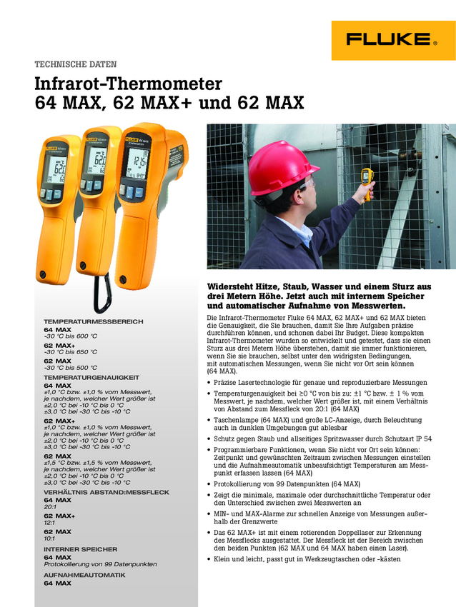 Fluke 62 MAX PLUS Pirometr Kalibracja (DAkkS) Optyka 12:1 -30 - +650 °C