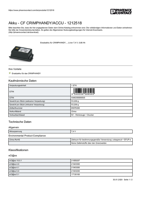 1212518 Phoenix Contact CF CRIMPHANDY/ACCU 1212518 Zaciskarka akumulatorowa