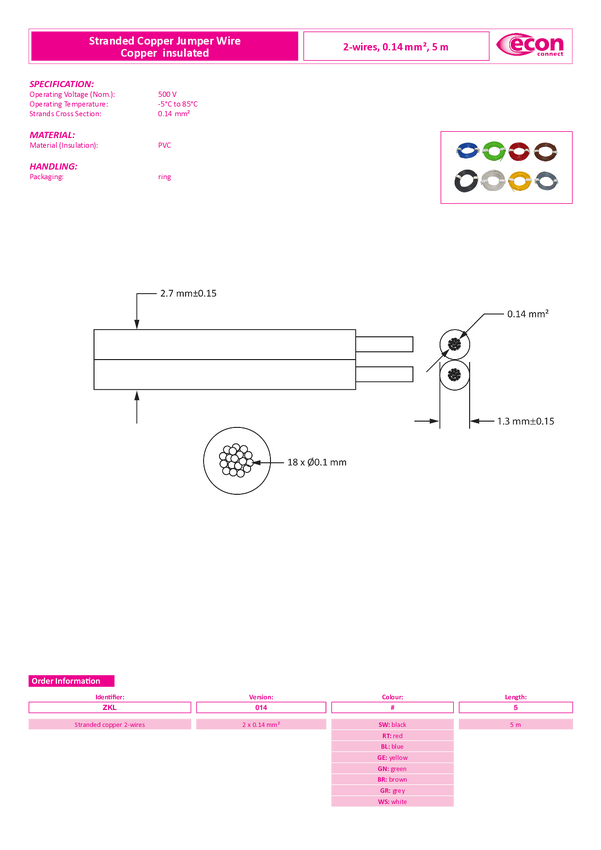 ZKL014RT5 econ connect ZKL014RT5 Przewód linka 2 x 0.14 mm² czerwony 5 m