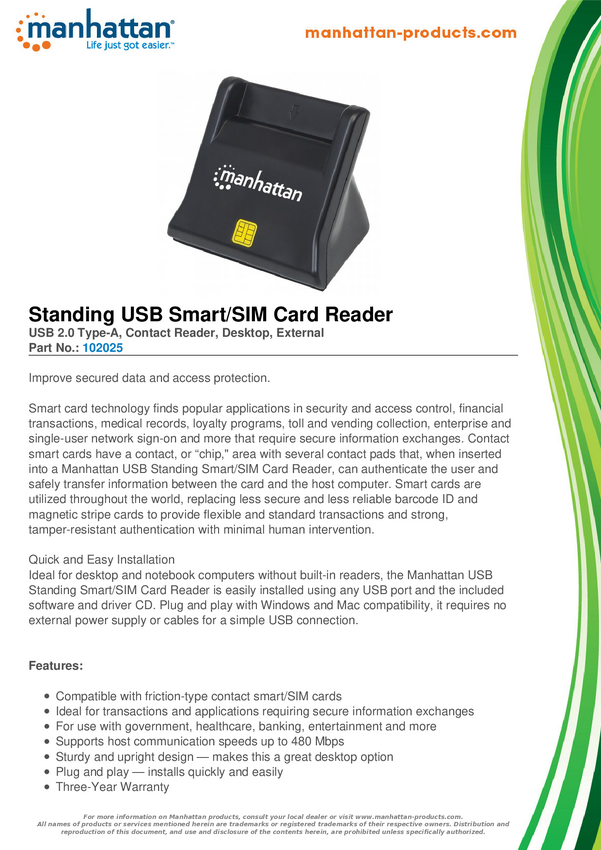 102025 Czytnik kart chip Manhattan 102025 1 szt.